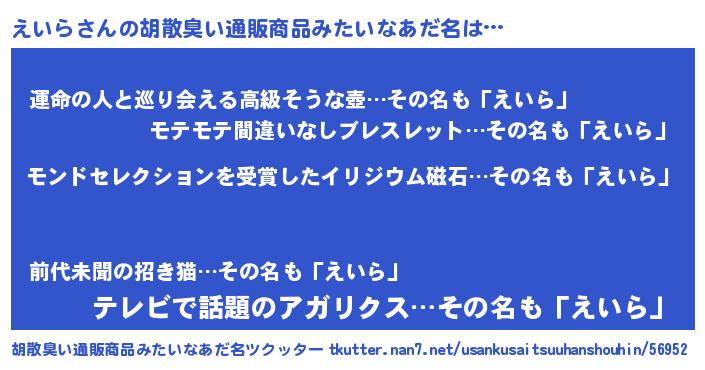| 意味不明あだ名 | 『眠気覚ましガムえいら味』『自称えいら』 |