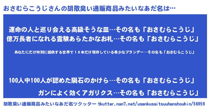 | 意味不明あだ名 | 『住所不定無職おさむらこうじ(86歳)』 |