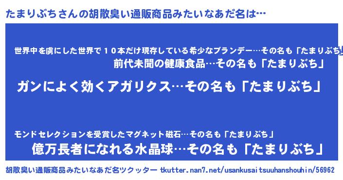 | 意味不明あだ名 | 『自称たまりぶち』『ペロリンたまりぶち』 |