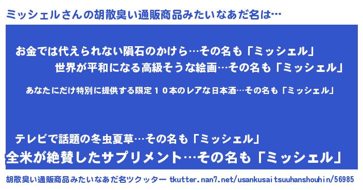 | ヒーロー風カッコイイあだ名 | 『仮面ミッダー』『慈愛の使者ミッシェル』 |