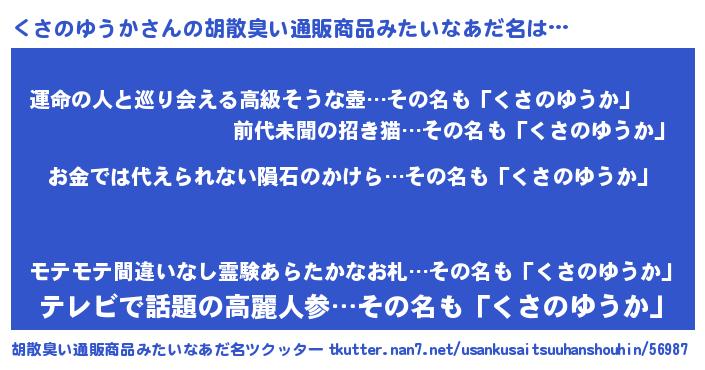 | ヘコむあだ名 | 『豆乳』『くさのゆうか(爆)』 |