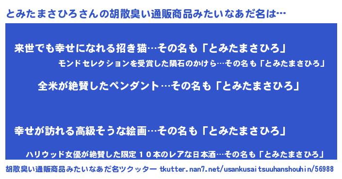 | 男性向けラノベタイトル風あだ名 | 『とみたまさひろの嫁は女の子じゃないと思った?』 |
