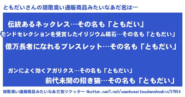 | ヘコむあだ名 | 『ともにー』『ともっぺ』『レバニラ』 |