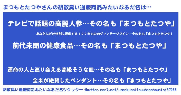 | ヘコむあだ名 | 『まつもとたつや(笑)』『まつを』 |