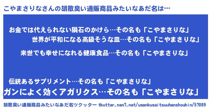 | ヘコむあだ名 | 『こやまさりな(爆)』『つくし』 |