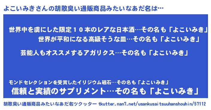 | 意味不明あだ名 | 『自称よこいみき』 |