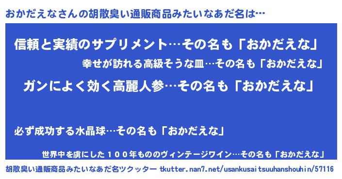 | 欧米人風あだ名 | 『アンジェラ・おかだえな』 |