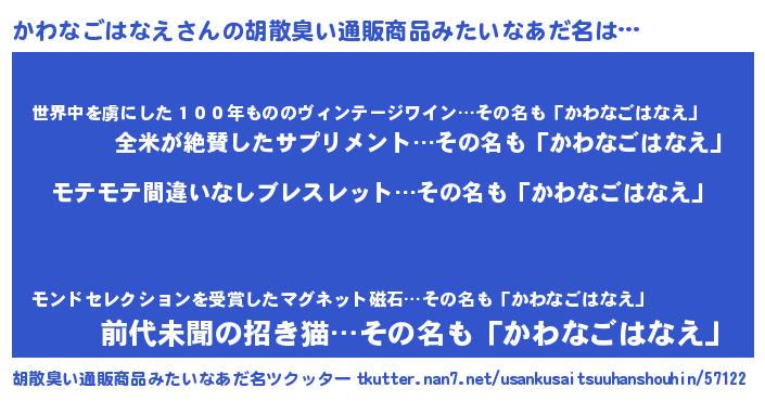 かわなごはなえさんの胡散臭い通販商品みたいなあだ名をツクッター!