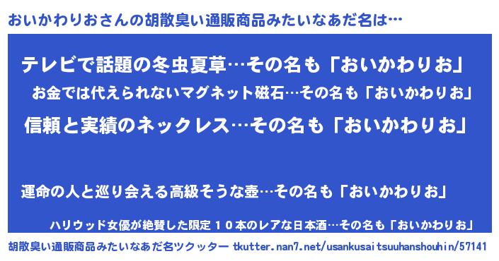 | 欧米人風あだ名 | 『ウサインおいかわりお』 |
