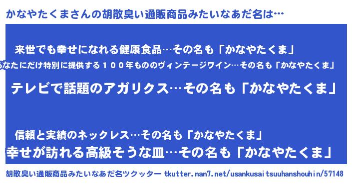 | 意味不明あだ名 | 『自称かなやたくま』 |