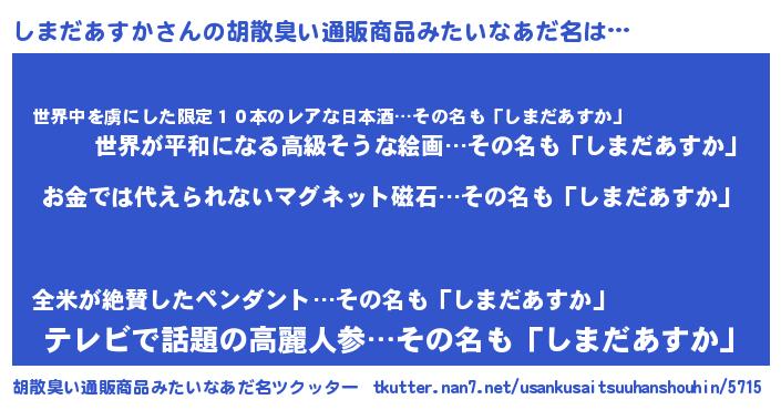 | ヘコむあだ名 | 『なまこ酢』『しまっ子』 |