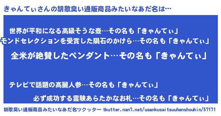| ヘコむあだ名 | 『きゃぷりん』『豆乳』『きゃにー』 |