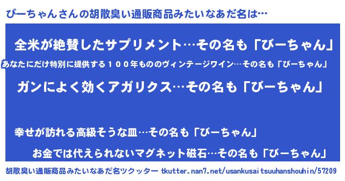 | 恥ずかしいあだ名 | 『ビーチャンデラックス』『ビーリンリン』 |