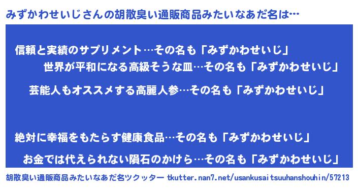 | 意味不明あだ名 | 『自称みずかわせいじ』 |