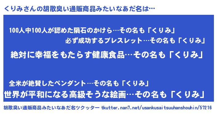 | ヘコむあだ名 | 『くりみ(爆)』『つくし』『くりもー』 |
