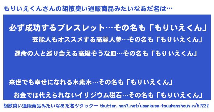 | ヘコむあだ名 | 『酢こんぶ』『もりにゅー』 |
