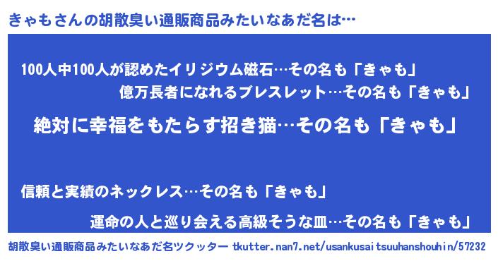 | ヘコむあだ名 | 『きゃも(笑)』『つくし』『きゃを』 |