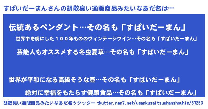 | ヘコむあだ名 | 『すぱっちょ』『すぱいだーまん(震え声)』 |