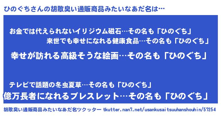 | ヘコむあだ名 | 『つくし』『ひのにゅー』『ひのっぺ』 |