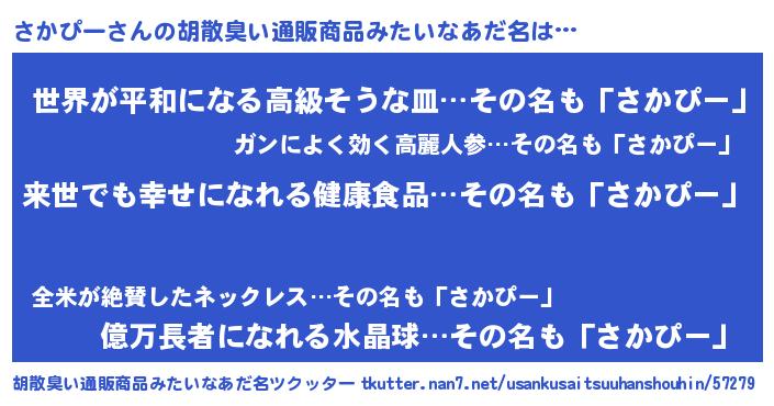 | 男性向けラノベタイトル風あだ名 | 『転生したらさかぴーだった件』 |