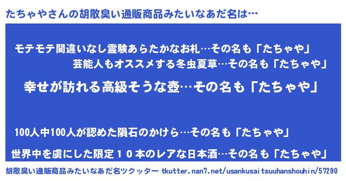 | 意味不明あだ名 | 『たちゃやフォーエバー』『自称たちゃや』 |