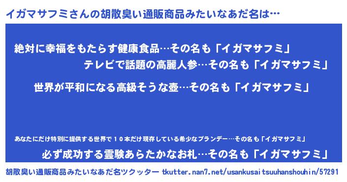 | 男性向けラノベタイトル風あだ名 | 『転生したらイガマサフミだった件』 |