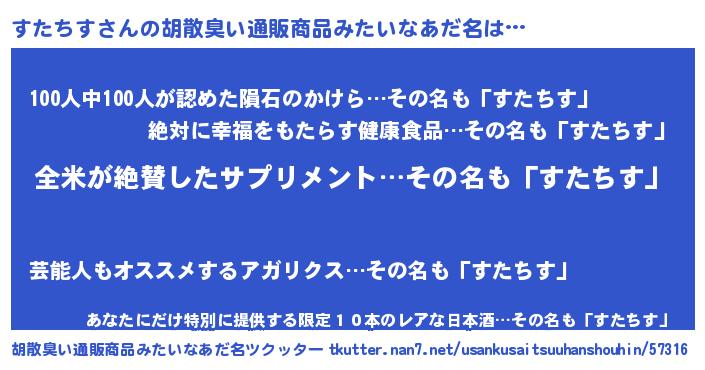 | ヘコむあだ名 | 『すた太郎』『すたちす(震え声)』 |