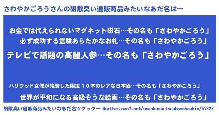 | 男性向けラノベタイトル風あだ名 | 『はたらくさわやかごろうさま!』 |