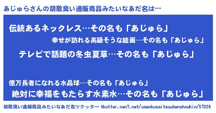 | 意味不明あだ名 | 『自称あじゅら』『永久保存あじゅら』 |