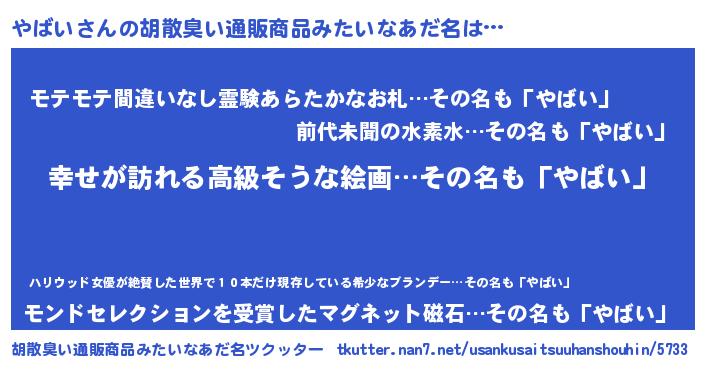 | 女子向けラノベタイトル風あだ名 | 『やばいの雑貨屋さん』『やばい恋絵巻』 |