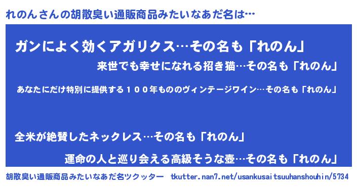 意味不明あだ名 | 『住所不定無職れのん(3歳)』『自称れのん』 |