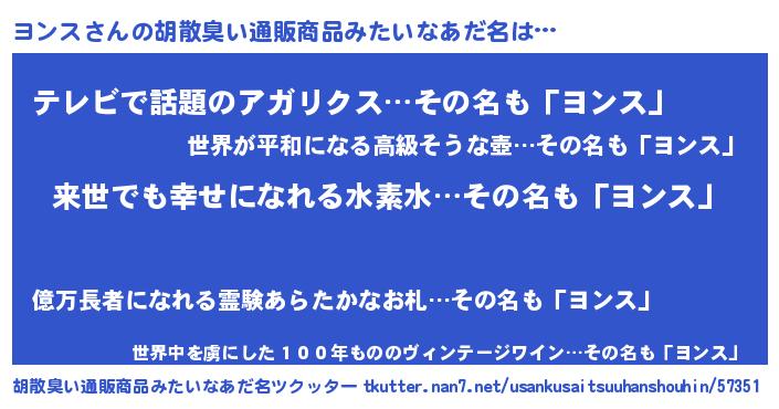 | ヘコむあだ名 | 『ヨンス(震え声)』『豆乳』 |