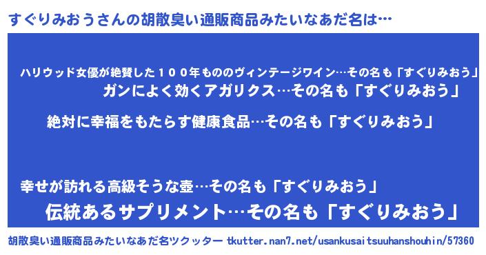 | 意味不明あだ名 | 『永久保存すぐりみおう』 |