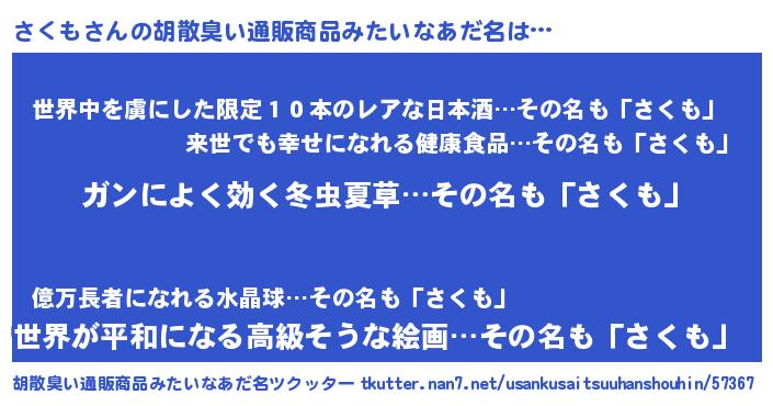 | 意味不明あだ名 | 『自称さくも』『たけのこ科さくも属』 |