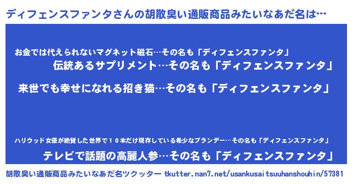 | 意味不明あだ名 | 『永久保存ディフェンスファンタ』 |