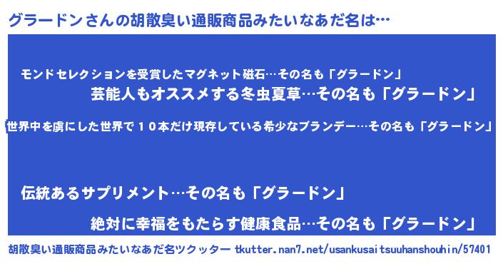 | 意味不明あだ名 | 『住所不定無職グラードン(93歳)』 |