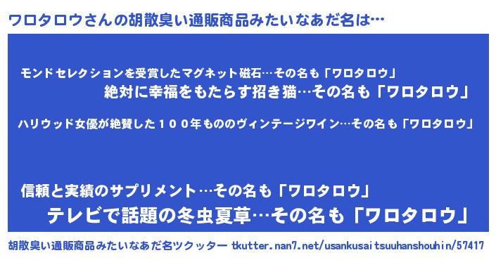 | 意味不明あだ名 | 『住所不定無職ワロタロウ(2歳)』 |