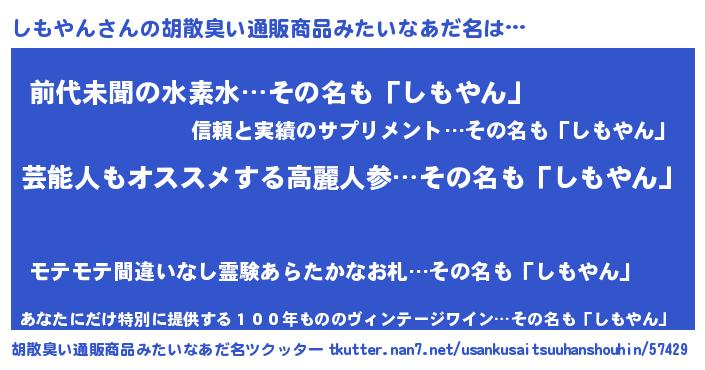 | ヘコむあだ名 | 『しもやん(小並感)』『しもっちょ』 |