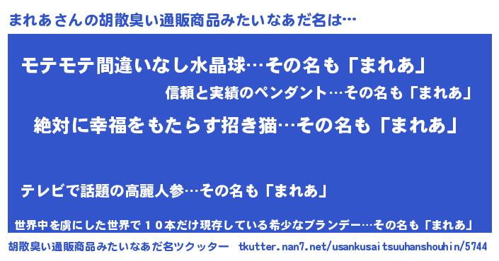 | 欧米人風あだ名 | 『ダルビッシュまれあ』『マイケルまれあ』 |