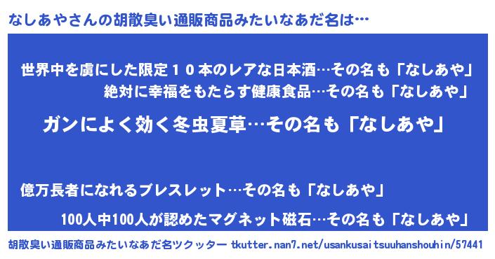 | ヘコむあだ名 | 『なしあや(遠い目)』『なしふぇ~』 |