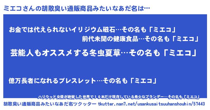 | 欧米人風あだ名 | 『ケンブリッジミエコ』『ダニエルミエコ』 |