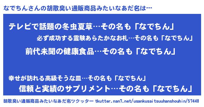 | 意味不明あだ名 | 『永久保存なでちん』『自称なでちん』 |