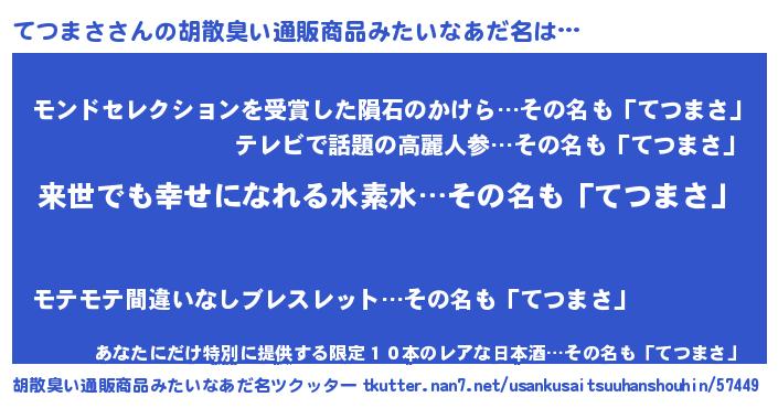 | 意味不明あだ名 | 『永久保存てつまさ』『自称てつまさ』 |