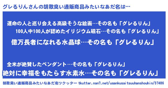 グレるりんさんの胡散臭い通販商品みたいなあだ名をツクッター!