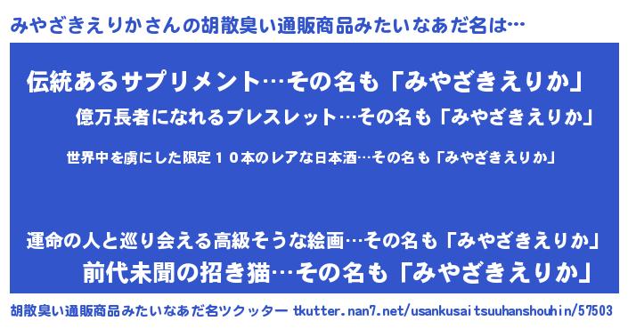 | 欧米人風あだ名 | 『みやざきえりか・ステッグマイヤー』 |