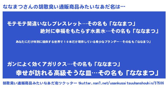 | 意味不明あだ名 | 『住所不定無職ななまつ(84歳)』 |