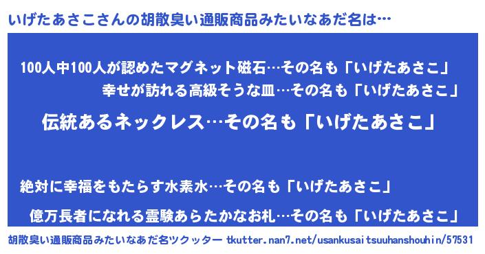 いげたあさこさんの胡散臭い通販商品みたいなあだ名をツクッター!