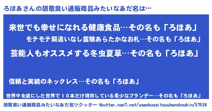 | 意味不明あだ名 | 『自称ろほあ』『永久保存ろほあ』 |