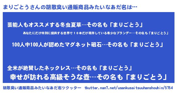 | 肩書あだ名 | 『まりごとう助教授』『まりごとう総統』 |