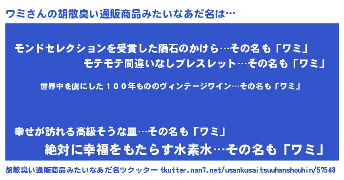 | 意味不明あだ名 | 『住所不定無職ワミ(7歳)』『永久保存ワミ』 |